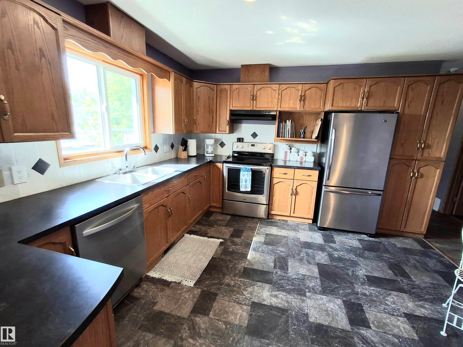 What a Lovely well kept 4 bedroom - 3 bathroom home! (No smoking no pets) This Bi-level Boasts a huge kitchen with plenty of counter and storage ( all appliances stay) which over looks the fully fenced back yard. A Large Dining Area open to the east facing living room. The Main floor Laundry has plenty of room for all the clothes and has a laundry tub for added convenience. The bedrooms down the hall are spacious as well , with the Master bedroom having a 2pc. ensuite. Down stairs is fully finished with ... an additional 2 large bedrooms with a 3pc. bath and a great rec. room with wet bar, cold room and storage area . There is a double attached insulated garage and a large concrete parking pad. All you have to do is relax on your west facing tiered deck and enjoy the sunset... everything is done for you. Even some raspberries ;)