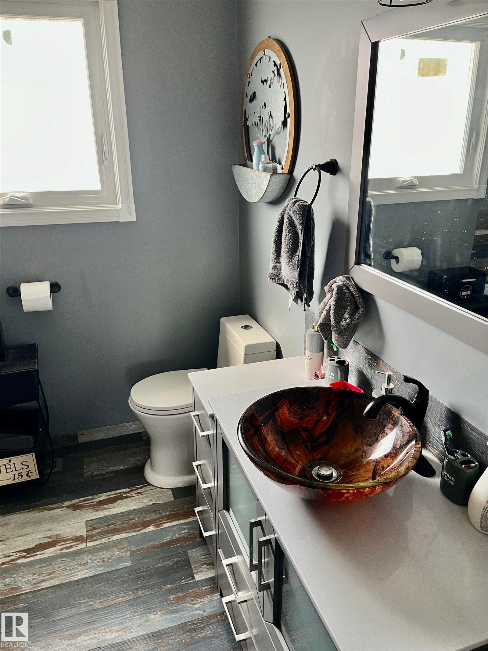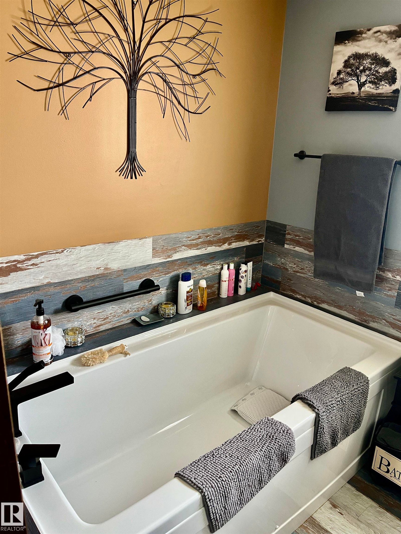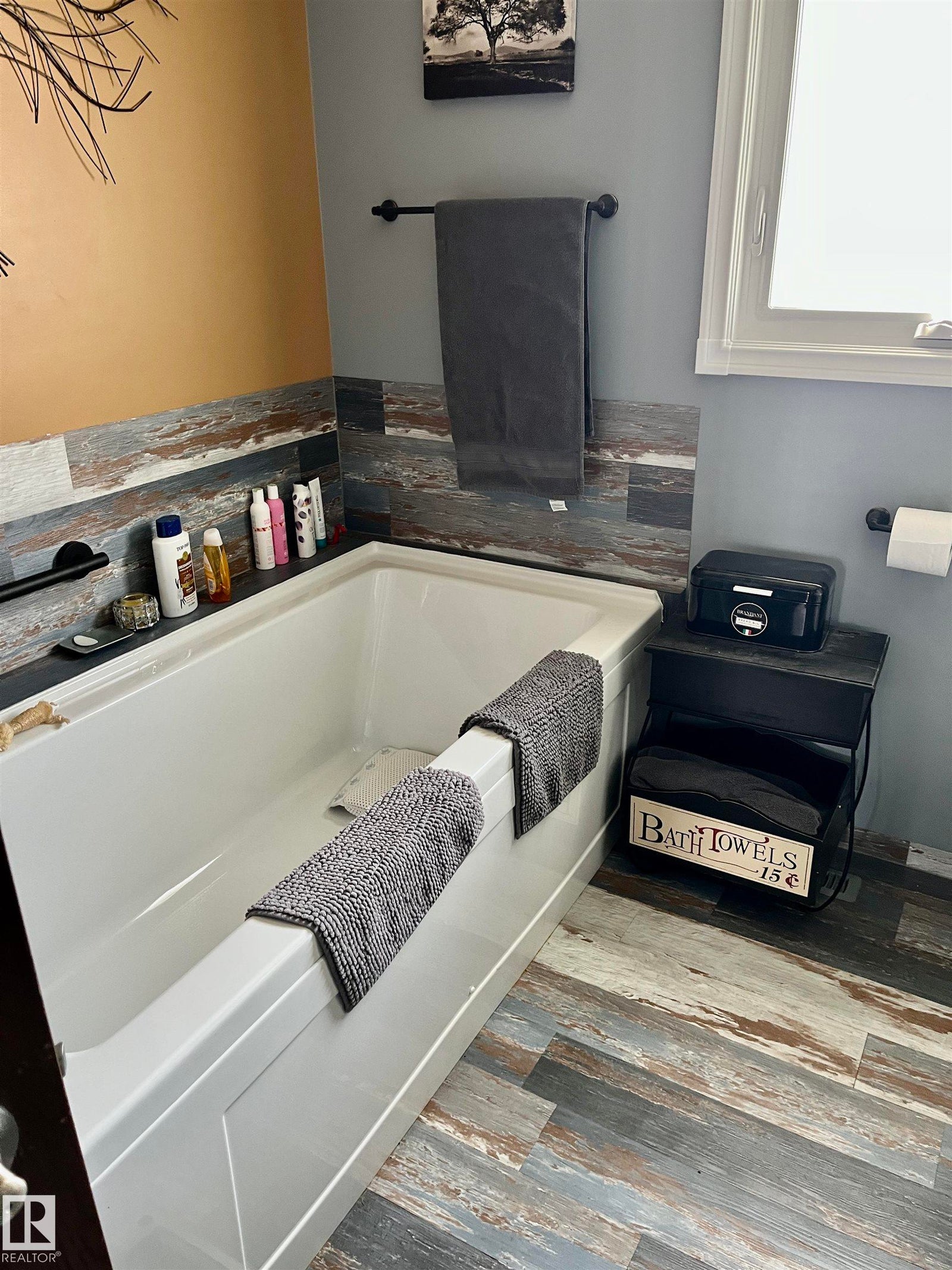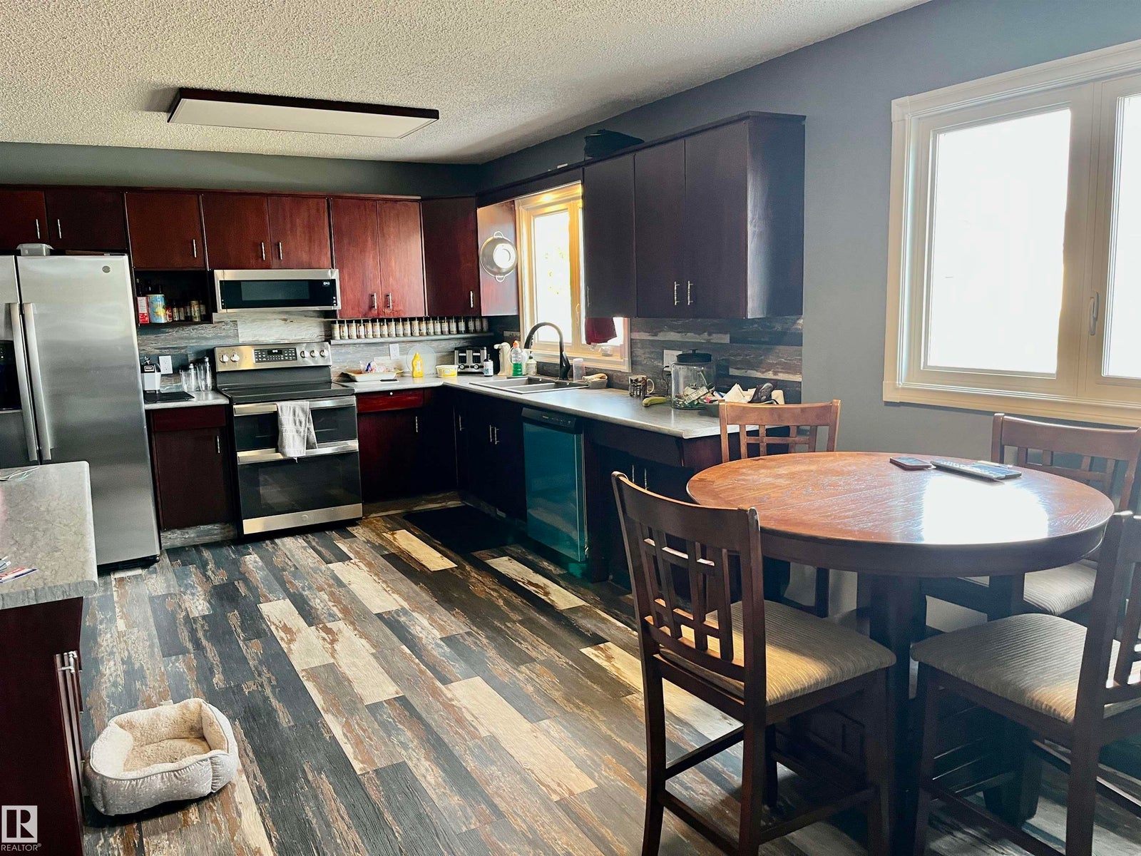 WHAT A LOVELY HOME!! BOASTING 3 bedrooms & 3 bathroom Bungalow on a large corner lot in Smoky Lake.. So Many Upgrades: in 2024 new flooring, appliances. - 2023, air conditioning, new bath room (with huge tub), maintenance free deck. - 2022 - All new windows, furnace, hot water tank, the breeze way enclosed with new doors and new garden shed in back yard. Main floor laundry, nice open kitchen/dining area and spacious living room with fireplace. Basement has an enormous rec. room , utility room, bedroom, bathroom, and cold storage. Fully fenced yard and plenty parking. With Golf 2 miles away.. Just Unpack and Enjoy! Close to School, Parks, and Hospital...